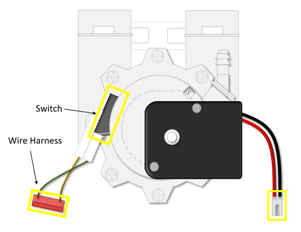 8. At this point, you'll reconnect the wires to the Motor and Switch. The switch connection should have one exposed terminal/prong.