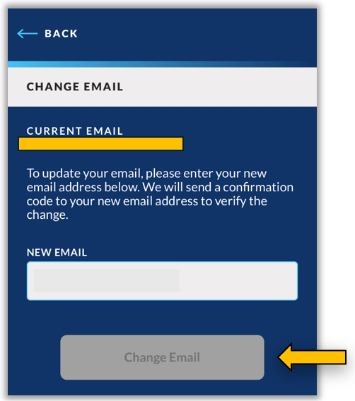 3. Enter in the NEW email address you would like to use. Then select 'Change Email'. It will turn blue when you have an email address in there.