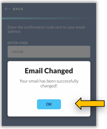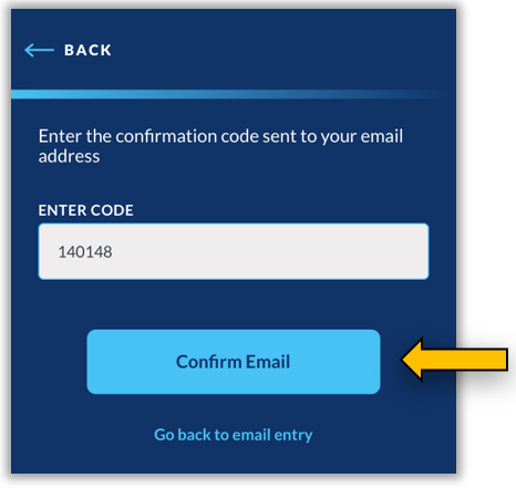 5. Back in the app, type that code into the box and select 'Confirm Email'.