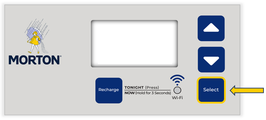3. Press the Select button once more to restart the display board. You'll need to re-program the softener now so head on over to our article Softener Programming Guide for instructions.