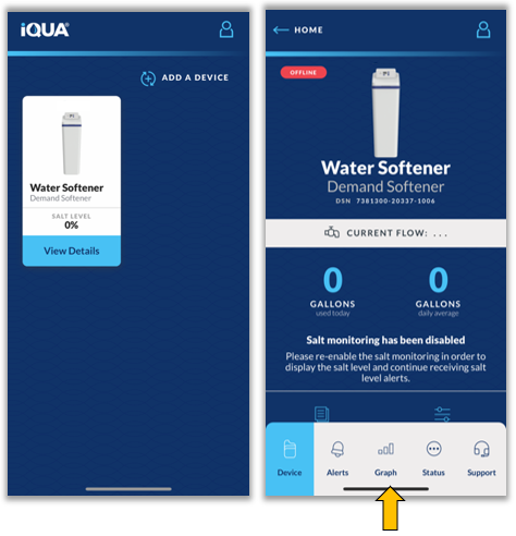 2. Once you've confirmed the app is up to date, log-in, select your device and then select the Graph section at the bottom.